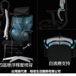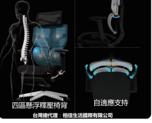 1. 4區懸浮釋壓椅背:分區設計,減壓舒適,支持背部每一部位。