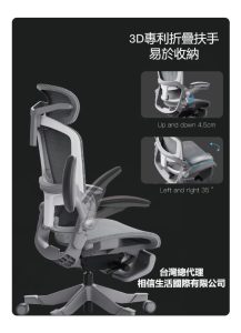 • 3D專利扶手:配備3D可調扶手,支撐手肘並隨意調整,減少肩膀與手腕的壓力,提供靈活且舒適的支撐。