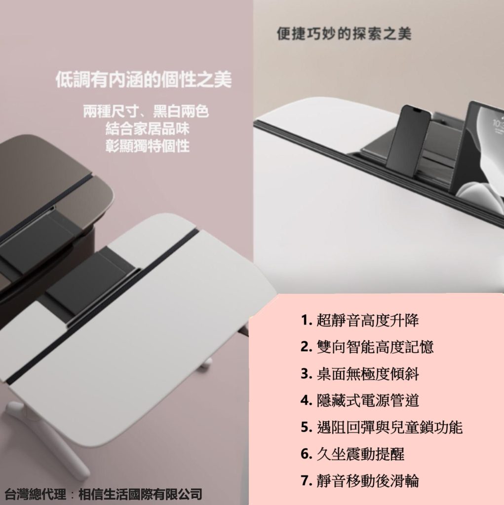 內建智慧高度感測器,自動調整至最佳坐站姿勢。支援雙向記憶功能,可儲存兩個預設高度(如“站立模式”與“坐姿模式”),輕鬆一鍵切換。