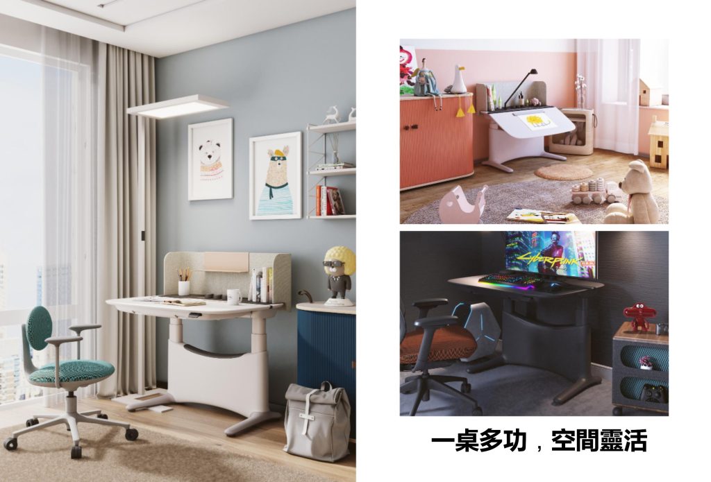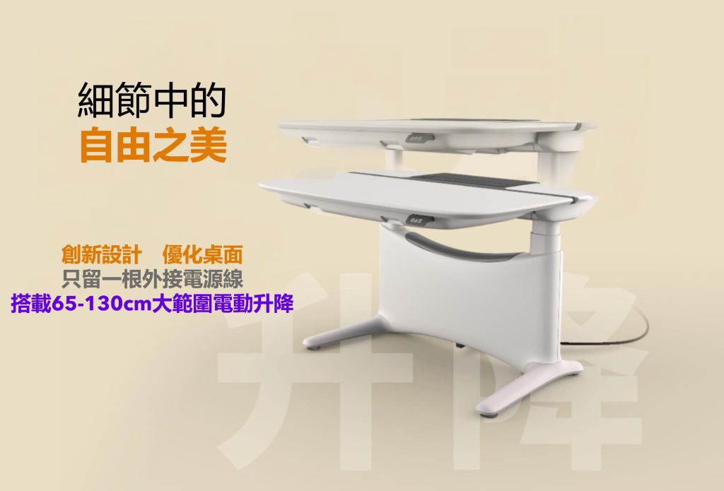 全電動機構允許65cm-130cm高度調節,提供無縫體驗,自由切換坐/站姿勢