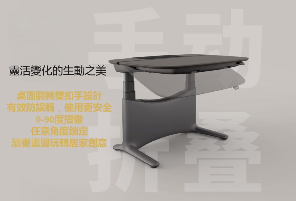 桌面獨特的傾斜機構,可容納高達 90° 的「摺疊式」要求
